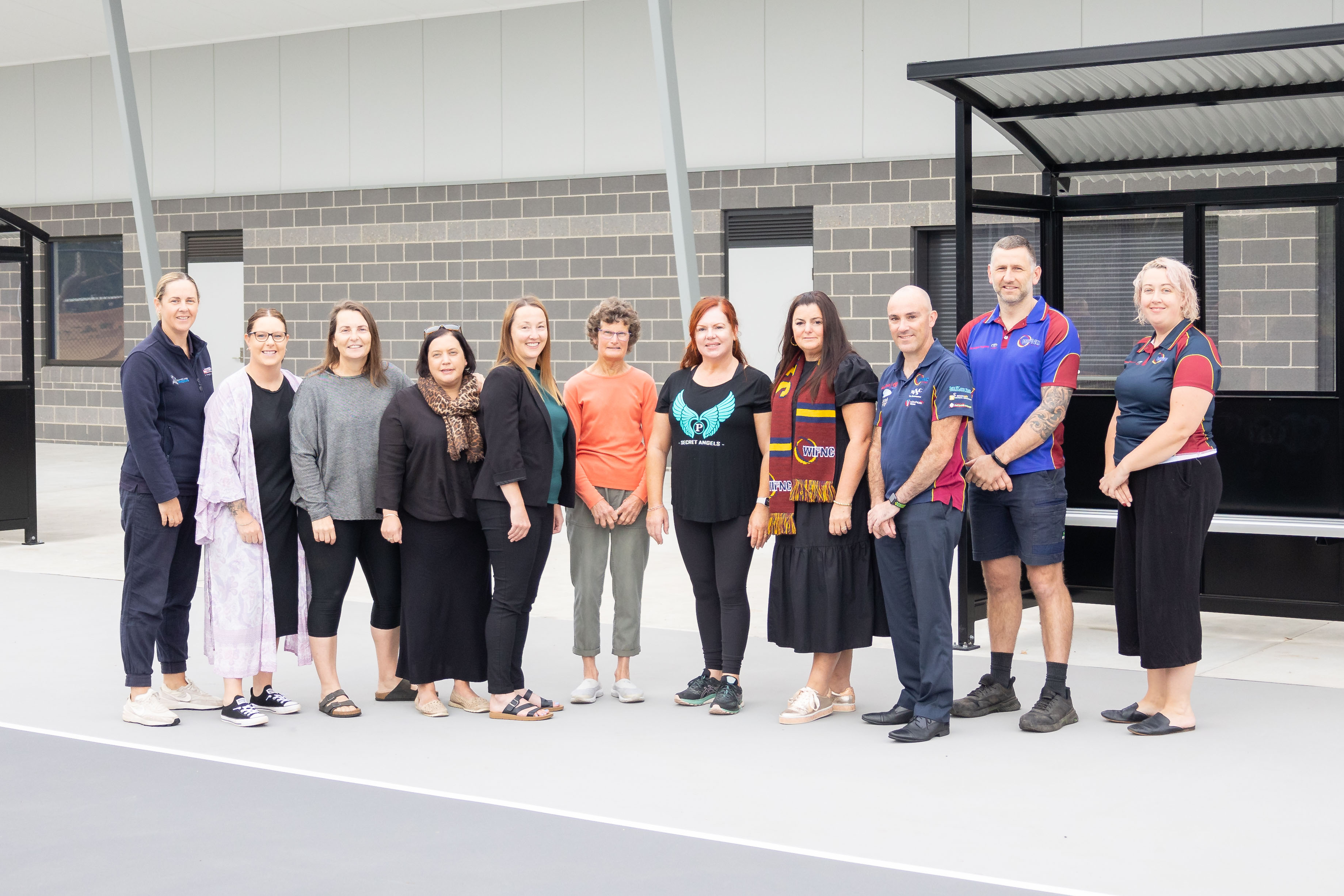 Image: Friends, teammates and club representatives joined Liza's mum Carol at the newly constructed Western Park netball pavilion that will be named in Liza's honour.